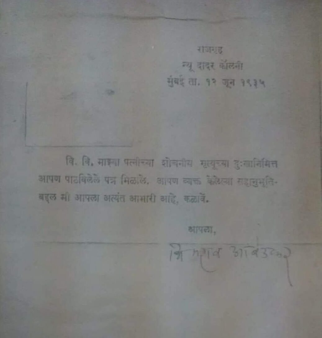 “He [Dr Ambedkar] was very considerate to thank everyone personally who sent condolence messages to him on her death. In one of the letters, Babasaheb wrote: ‘I received your condolence letter on the lamentable death of my wife. I wish to let you know that I am extremely indebted for the sympathy you showed on me’.”[14]