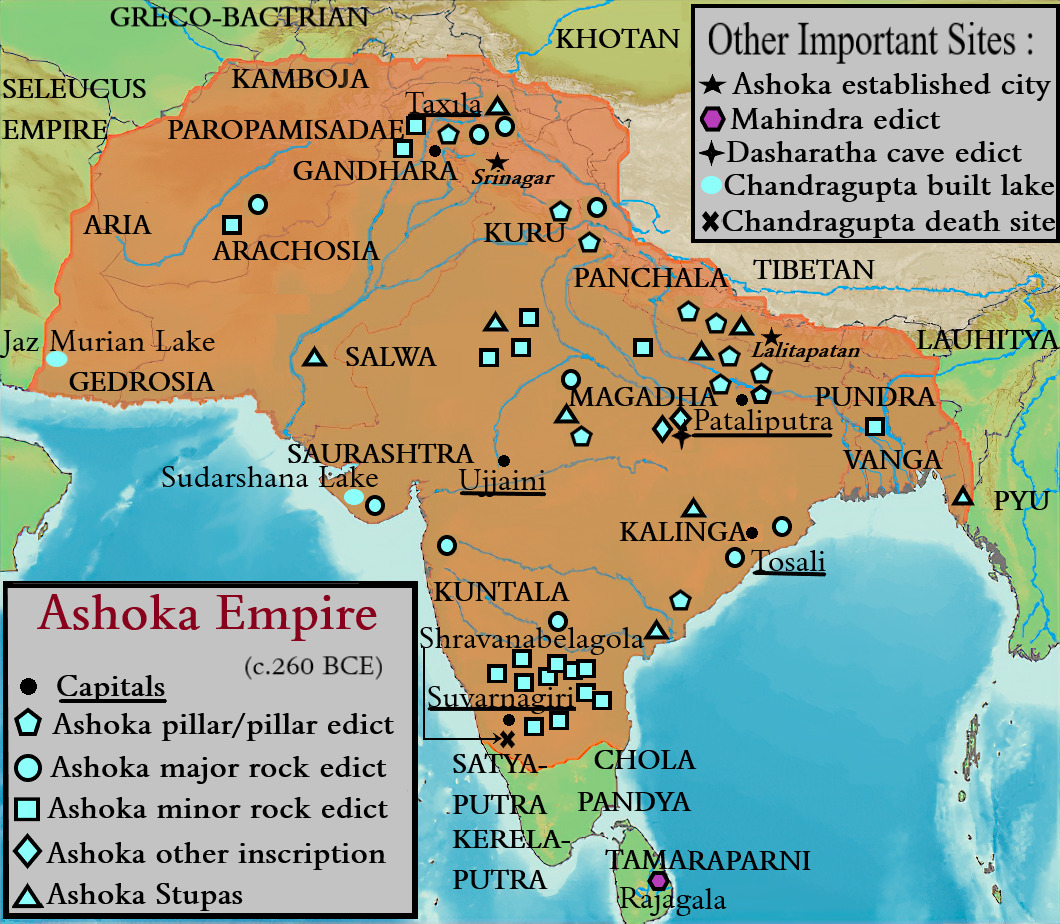 - असोक ने पूरे भारत उपमहाद्वीप (भारत, पाकिस्तान, बांग्लादेश) और अफगानिस्तान को एक सांस्कृतिक ईकाई के रूप में संगठित किया, जिसमें विविधता और भिन्नता को काफी जगह दी गई है।