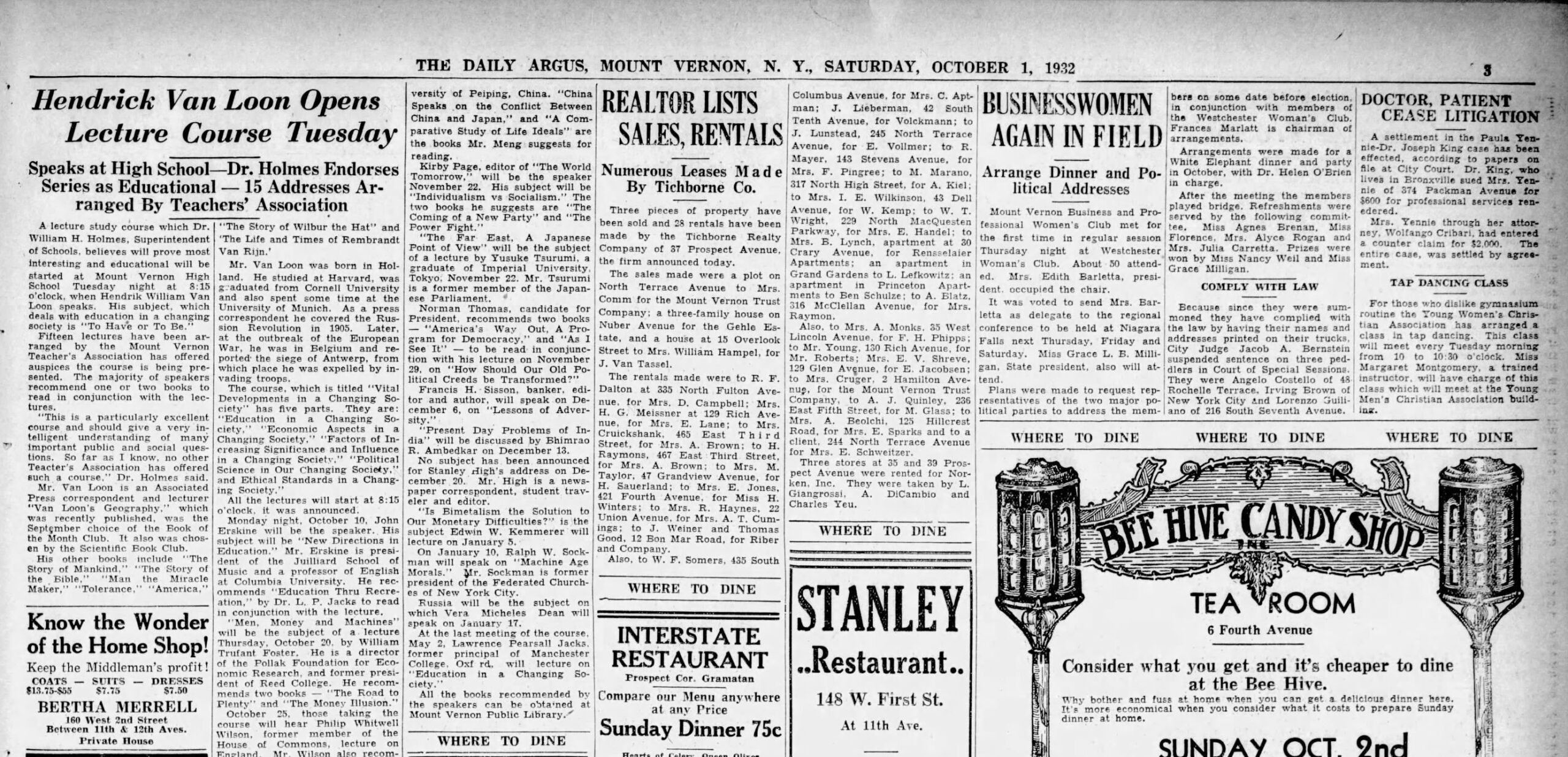 Courtesy: The Daily Argus, Mount Vernon, NY, 1 October 1932, p 3