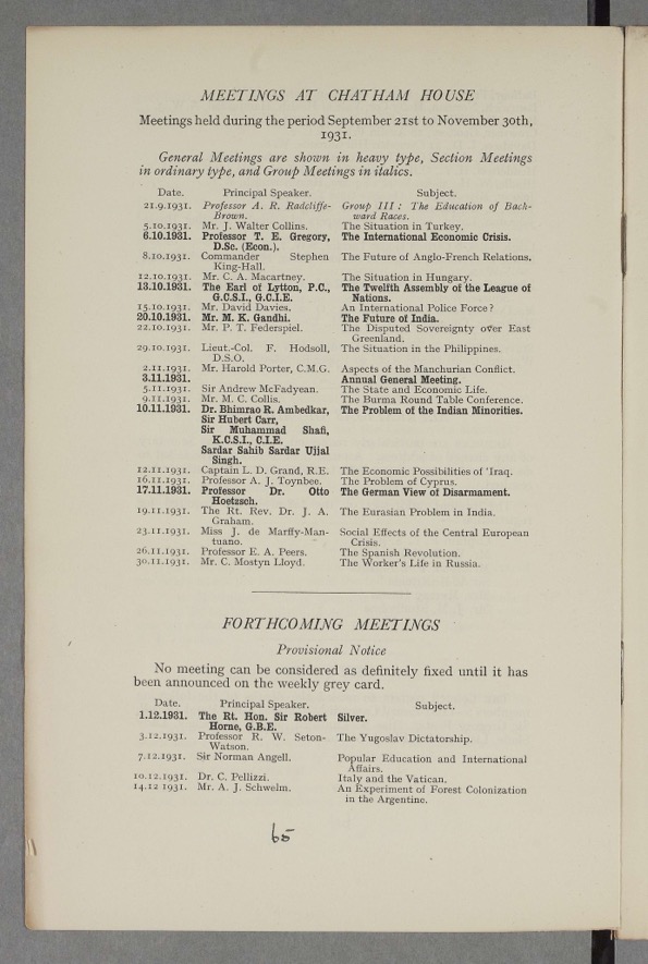 Dr Ambedkar mentioned in the Chatham House lecture schedule. Courtesy: National Library of Australia