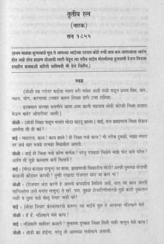 आरंभ में जोशी-ब्राह्मण के आगे साहस दिखाने वाली स्त्री बच्चे के नाम पर कमजोर पड़ती चली जाती है। इसके साथ ही आरंभ होता है उसके शोषण का सिलसिला, जो कुनबी दंपति को कंगाल बना देता है। यह नाटक आज से करीब 180 वर्ष पहले लिखा गया था, लेकिन सच तो यह है कि ऐसा नाटक और इतनी मारक शैली में लिख पाना आज के लेखक के लिए भी बहुत बड़ी चुनौती है। शायद इसी कारण सवा सौ साल तक कोई प्रकाशक इसे छापने की हिम्मत नहीं कर पाया था। इसका लंबे समय तक अप्रकाशित-उपेक्षित-अचर्चित रहना शूद्रातिशूद्र वर्ग के बुद्धिजीवियों में साहस की कमी तथा अपनी बौद्धिक विरासत की ओर से उदासीनता को दर्शाता है।